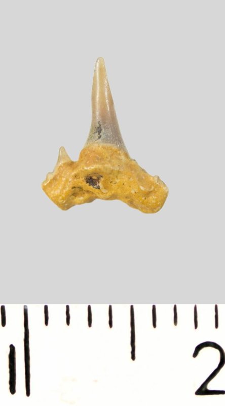 Зуб. Акула. Synechodus dubrisiensis (Mackie, 1863). Классификация: Хордовые Chordata, Позвоночные Vertebrata, Хрящевые рыбы Chondrichthyes, Пластиножаберные Elasmobranchii, Акулы Selachii, Синеходонтообразные Synechodontiformes, Palaeospinacidae