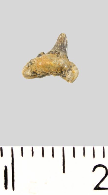 Зуб. Акула. Synechodus dubrisiensis (Mackie, 1863). Классификация: Хордовые Chordata, Позвоночные Vertebrata, Хрящевые рыбы Chondrichthyes, Пластиножаберные Elasmobranchii, Акулы Selachii, Синеходонтообразные Synechodontiformes, Palaeospinacidae
