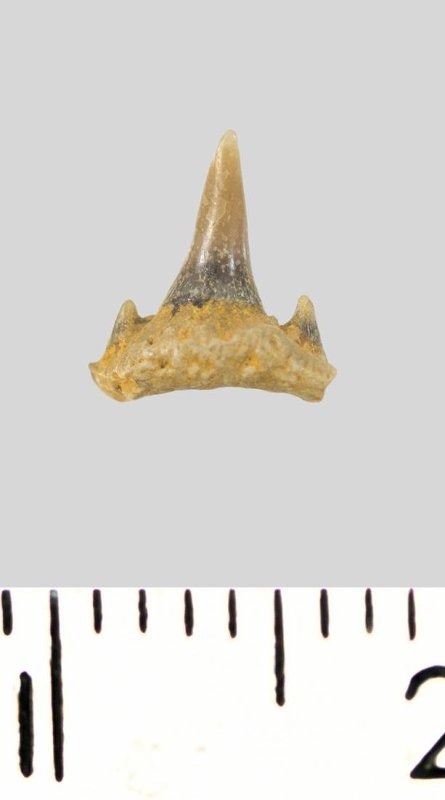 Зуб. Акула. Synechodus dubrisiensis (Mackie, 1863). Классификация: Хордовые Chordata, Позвоночные Vertebrata, Хрящевые рыбы Chondrichthyes, Пластиножаберные Elasmobranchii, Акулы Selachii, Синеходонтообразные Synechodontiformes, Palaeospinacidae