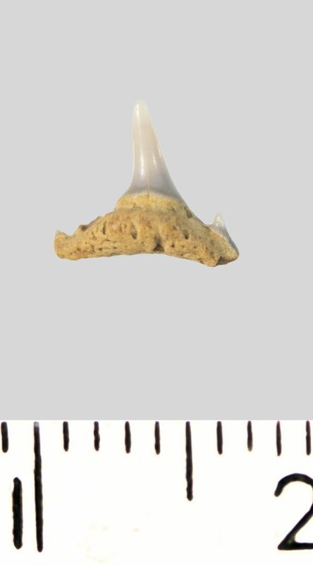 Зуб. Акула. Synechodus dubrisiensis (Mackie, 1863). Классификация: Хордовые Chordata, Позвоночные Vertebrata, Хрящевые рыбы Chondrichthyes, Пластиножаберные Elasmobranchii, Акулы Selachii, Синеходонтообразные Synechodontiformes, Palaeospinacidae