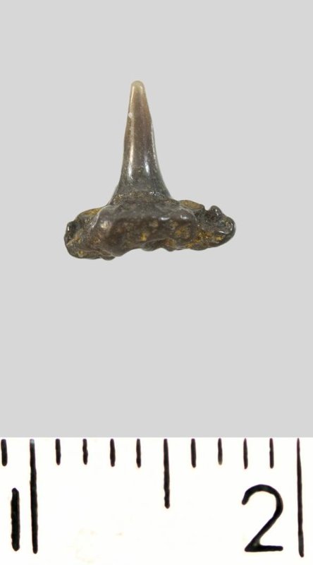 Зуб. Акула. Synechodus dubrisiensis (Mackie, 1863). Классификация: Хордовые Chordata, Позвоночные Vertebrata, Хрящевые рыбы Chondrichthyes, Пластиножаберные Elasmobranchii, Акулы Selachii, Синеходонтообразные Synechodontiformes, Palaeospinacidae