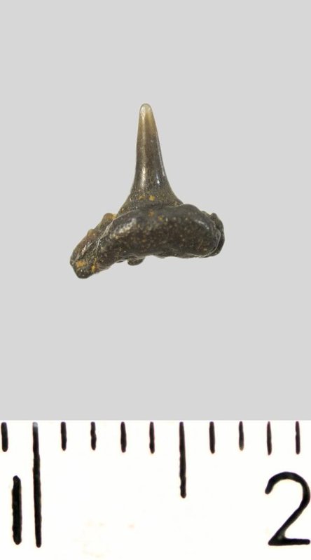 Зуб. Акула. Synechodus dubrisiensis (Mackie, 1863). Классификация: Хордовые Chordata, Позвоночные Vertebrata, Хрящевые рыбы Chondrichthyes, Пластиножаберные Elasmobranchii, Акулы Selachii, Синеходонтообразные Synechodontiformes, Palaeospinacidae