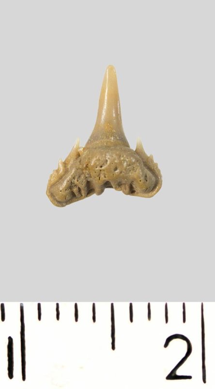 Зуб. Акула. Synechodus dubrisiensis (Mackie, 1863). Классификация: Хордовые Chordata, Позвоночные Vertebrata, Хрящевые рыбы Chondrichthyes, Пластиножаберные Elasmobranchii, Акулы Selachii, Синеходонтообразные Synechodontiformes, Palaeospinacidae