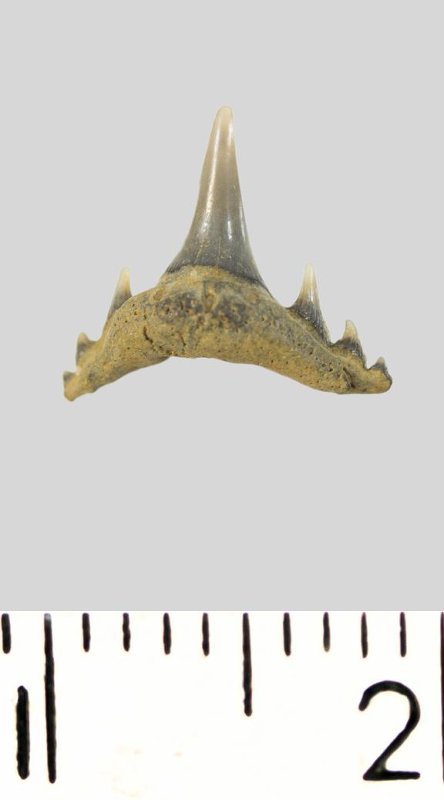 Зуб. Акула. Synechodus dubrisiensis (Mackie, 1863). Классификация: Хордовые Chordata, Позвоночные Vertebrata, Хрящевые рыбы Chondrichthyes, Пластиножаберные Elasmobranchii, Акулы Selachii, Синеходонтообразные Synechodontiformes, Palaeospinacidae