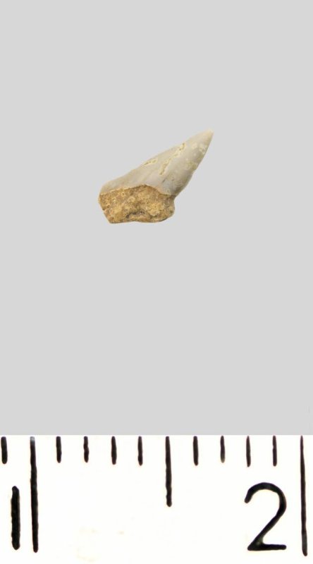 Зуб (фрагмент). Акула. Palaeoanacorax volgensis Glickman, 1971. Классификация: Хордовые Chordata, Позвоночные Vertebrata, Хрящевые рыбы Chondrichthyes, Пластиножаберные Elasmobranchii, Акулы Selachii, Ламнообразные Lamniformes, Anacoracidae
