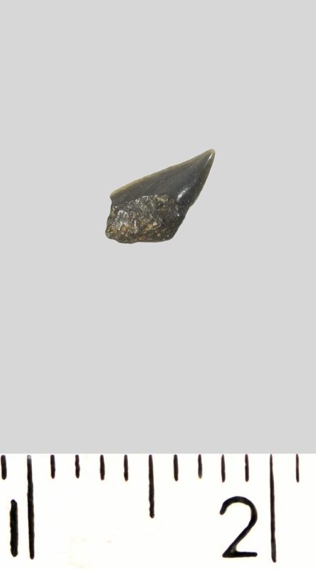 Зуб (фрагмент). Акула. Palaeoanacorax volgensis Glickman, 1971. Классификация: Хордовые Chordata, Позвоночные Vertebrata, Хрящевые рыбы Chondrichthyes, Пластиножаберные Elasmobranchii, Акулы Selachii, Ламнообразные Lamniformes, Anacoracidae