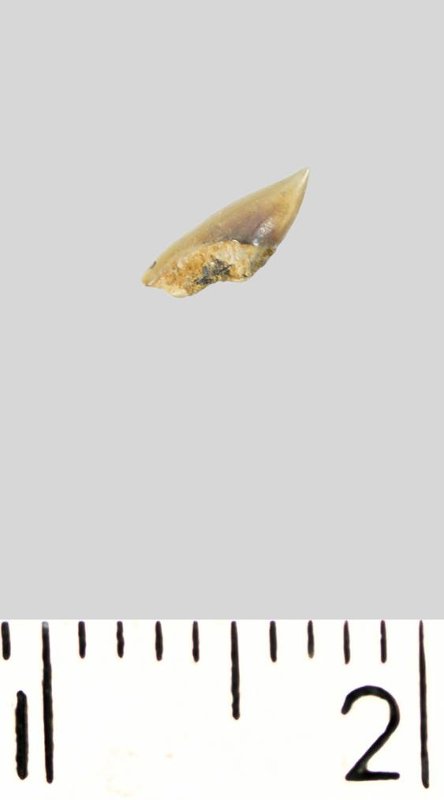 Зуб (фрагмент). Акула. Palaeoanacorax volgensis Glickman, 1971. Классификация: Хордовые Chordata, Позвоночные Vertebrata, Хрящевые рыбы Chondrichthyes, Пластиножаберные Elasmobranchii, Акулы Selachii, Ламнообразные Lamniformes, Anacoracidae