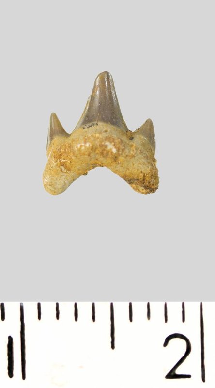 Зуб. Акула. Archaeolamna cf. kopingensis (Davis, 1890). Классификация: Хордовые Chordata, Позвоночные Vertebrata, Хрящевые рыбы Chondrichthyes, Пластиножаберные Elasmobranchii, Акулы Selachii, Ламнообразные Lamniformes, Cretoxyrhinidae