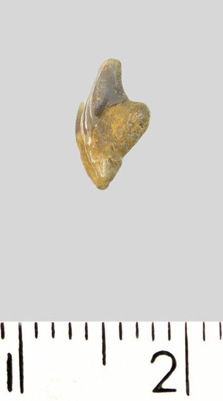 Зуб. Акула. Pseudoscapanorhynchus compressidens Herman 1977. Классификация: Хордовые Chordata, Позвоночные Vertebrata, Хрящевые рыбы Chondrichthyes, Пластиножаберные Elasmobranchii, Акулы Selachii, Ламнообразные Lamniformes, Pseudoscapanorhynchidae