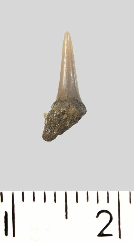 Зуб. Акула. Eostriatolamia subulata (Agassiz, 1843). Классификация: Хордовые Chordata, Позвоночные Vertebrata, Хрящевые рыбы Chondrichthyes, Пластиножаберные Elasmobranchii, Акулы Selachii, Ламнообразные Lamniformes, Песчаные акулы Odontaspididae