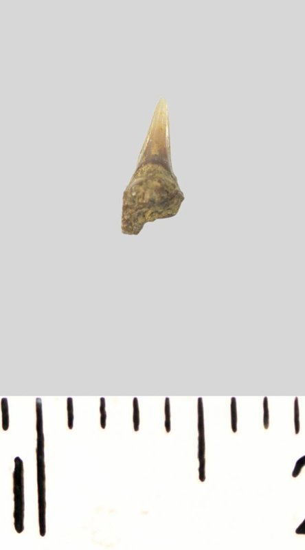 Зуб. Акула. Odontaspis striatula Dalinkevicius, 1935. Классификация: Хордовые Chordata, Позвоночные Vertebrata, Хрящевые рыбы Chondrichthyes, Пластиножаберные Elasmobranchii, Акулы Selachii, Ламнообразные Lamniformes, Песчаные акулы Odontaspididae