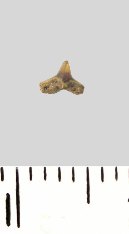 Зуб. Акула. Squatina cranei (Woodward, 1888). Классификация: Хордовые Chordata, Позвоночные Vertebrata, Хрящевые рыбы Chondrichthyes, Пластиножаберные Elasmobranchii, Акулы Selachii, Скватинообразные Squatiniformes, Морские ангелы Squatinidae