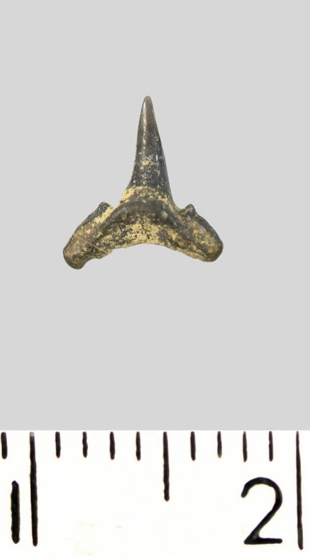 Зуб. Акула. Synechodus dubrisiensis (Mackie, 1863). Классификация: Хордовые Chordata, Позвоночные Vertebrata, Хрящевые рыбы Chondrichthyes, Пластиножаберные Elasmobranchii, Акулы Selachii, Синеходонтообразные Synechodontiformes, Palaeospinacidae