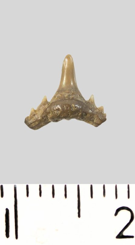 Зуб. Акула. Synechodus dubrisiensis (Mackie, 1863). Классификация: Хордовые Chordata, Позвоночные Vertebrata, Хрящевые рыбы Chondrichthyes, Пластиножаберные Elasmobranchii, Акулы Selachii, Синеходонтообразные Synechodontiformes, Palaeospinacidae