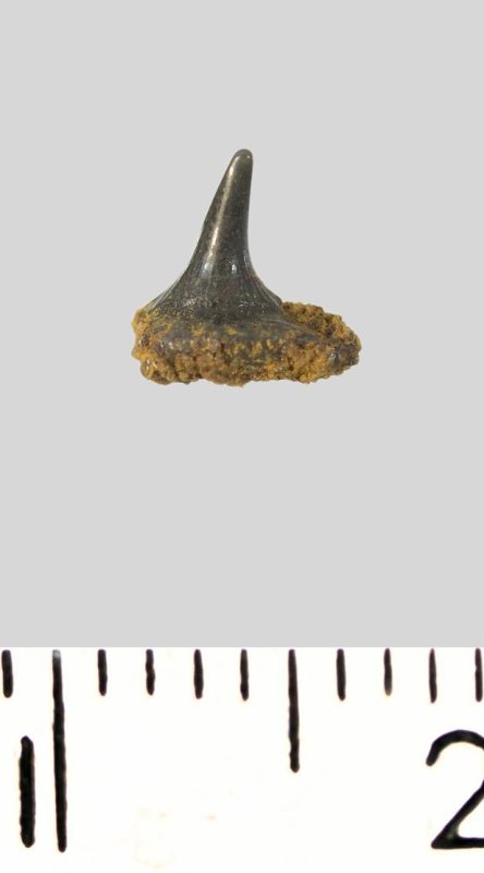Зуб. Акула. Synechodus dubrisiensis (Mackie, 1863). Классификация: Хордовые Chordata, Позвоночные Vertebrata, Хрящевые рыбы Chondrichthyes, Пластиножаберные Elasmobranchii, Акулы Selachii, Синеходонтообразные Synechodontiformes, Palaeospinacidae