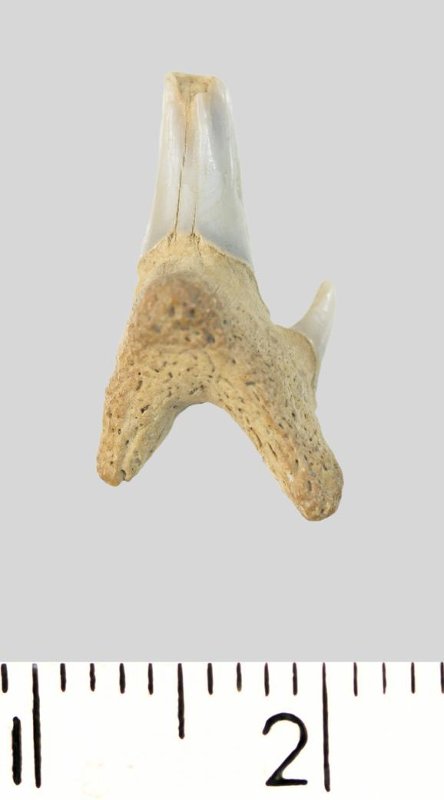 Зуб. Акула. Pseudoscapanorhynchus compressidens Herman 1977. Классификация: Хордовые Chordata, Позвоночные Vertebrata, Хрящевые рыбы Chondrichthyes, Пластиножаберные Elasmobranchii, Акулы Selachii, Ламнообразные Lamniformes, Pseudoscapanorhynchidae
