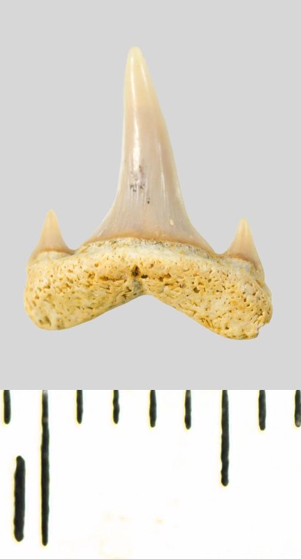 Зуб. Акула. Odontaspis subulata (Agassiz, 1843). Классификация: Хордовые Chordata, Позвоночные Vertebrata, Хрящевые рыбы Chondrichthyes, Пластиножаберные Elasmobranchii, Акулы Selachii, Ламнообразные Lamniformes, Песчаные акулы Odontaspididae