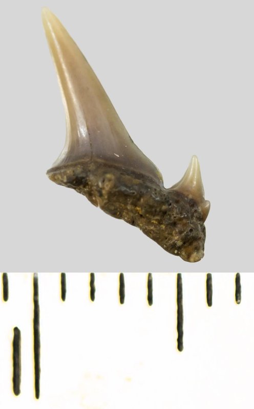 Зуб. Акула. Eostriatolamia subulata (Agassiz, 1843). Классификация: Хордовые Chordata, Позвоночные Vertebrata, Хрящевые рыбы Chondrichthyes, Пластиножаберные Elasmobranchii, Акулы Selachii, Ламнообразные Lamniformes, Песчаные акулы Odontaspididae
