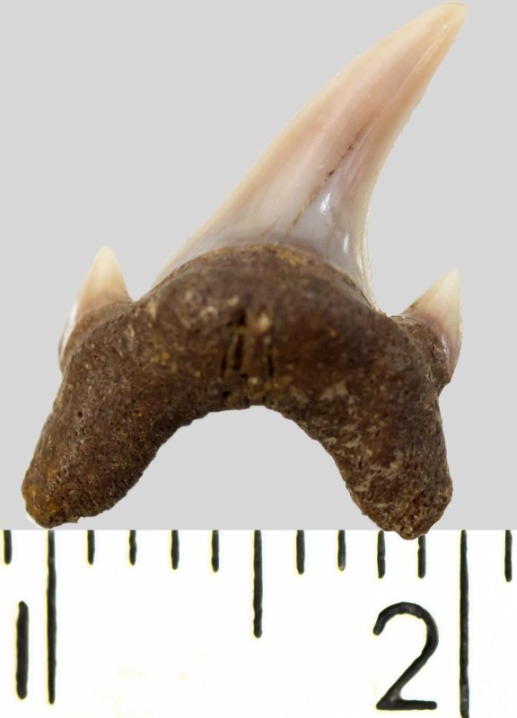 Зуб. Акула. Archaeolamna cf. kopingensis (Davis, 1890). Классификация: Хордовые Chordata, Позвоночные Vertebrata, Хрящевые рыбы Chondrichthyes, Пластиножаберные Elasmobranchii, Акулы Selachii, Ламнообразные Lamniformes, Cretoxyrhinidae