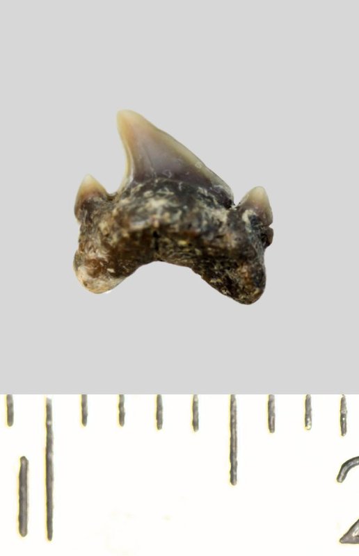 Зуб. Акула. Archaeolamna cf. kopingensis (Davis, 1890). Классификация: Хордовые Chordata, Позвоночные Vertebrata, Хрящевые рыбы Chondrichthyes, Пластиножаберные Elasmobranchii, Акулы Selachii, Ламнообразные Lamniformes, Cretoxyrhinidae