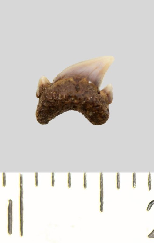 Зуб. Акула. Archaeolamna cf. kopingensis (Davis, 1890). Классификация: Хордовые Chordata, Позвоночные Vertebrata, Хрящевые рыбы Chondrichthyes, Пластиножаберные Elasmobranchii, Акулы Selachii, Ламнообразные Lamniformes, Cretoxyrhinidae