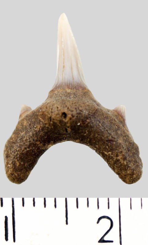 Зуб. Акула. Protolamna cf. sokolovi Capetta, 1980. Классификация: Хордовые Chordata, Позвоночные Vertebrata, Хрящевые рыбы Chondrichthyes, Пластиножаберные Elasmobranchii, Акулы Selachii, Ламнообразные Lamniformes, Pseudoscapanorhynchidae