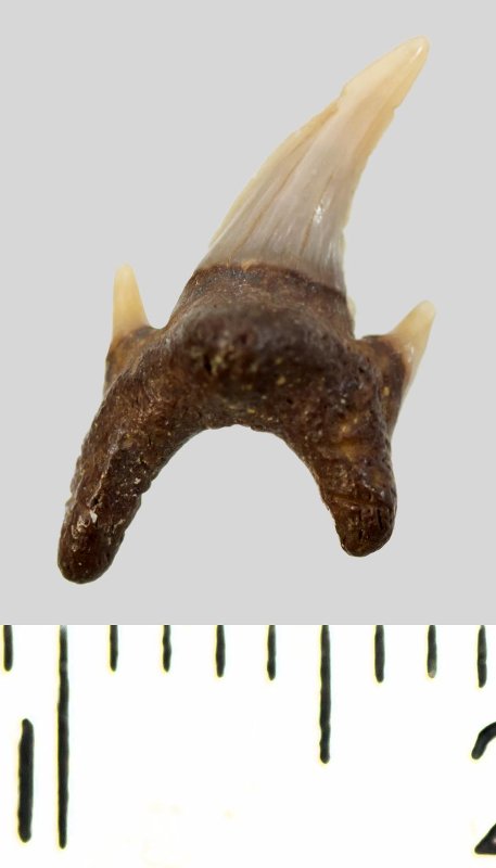 Зуб. Акула. Protolamna cf. sokolovi Capetta, 1980. Классификация: Хордовые Chordata, Позвоночные Vertebrata, Хрящевые рыбы Chondrichthyes, Пластиножаберные Elasmobranchii, Акулы Selachii, Ламнообразные Lamniformes, Pseudoscapanorhynchidae
