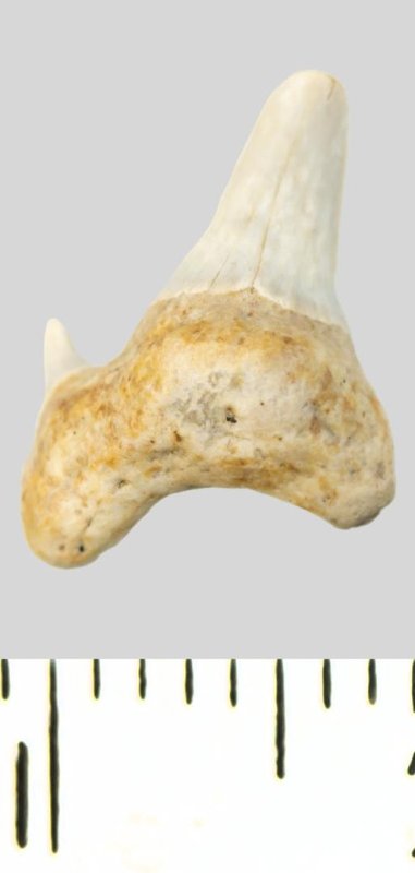 Зуб. Акула. Protolamna cf. sokolovi Capetta, 1980. Классификация: Хордовые Chordata, Позвоночные Vertebrata, Хрящевые рыбы Chondrichthyes, Пластиножаберные Elasmobranchii, Акулы Selachii, Ламнообразные Lamniformes, Pseudoscapanorhynchidae