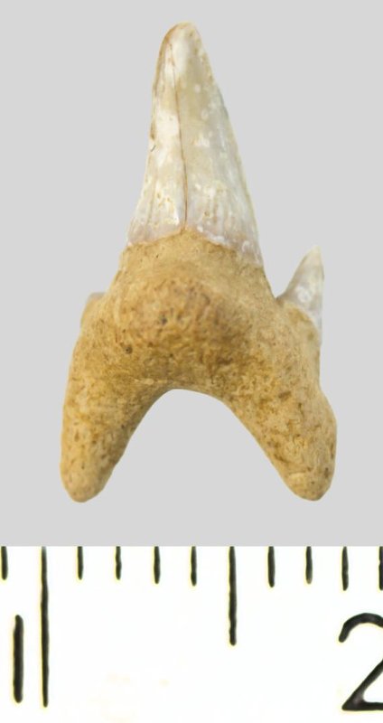 Зуб. Акула. Protolamna cf. sokolovi Capetta, 1980. Классификация: Хордовые Chordata, Позвоночные Vertebrata, Хрящевые рыбы Chondrichthyes, Пластиножаберные Elasmobranchii, Акулы Selachii, Ламнообразные Lamniformes, Pseudoscapanorhynchidae
