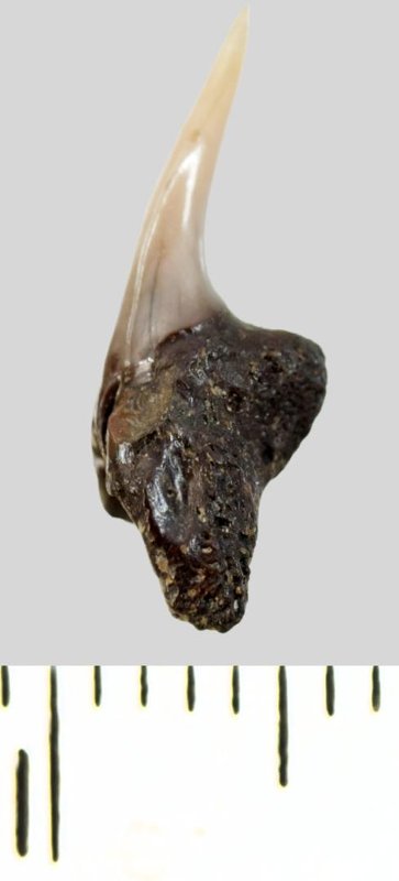 Зуб. Акула. Pseudoscapanorhynchus compressidens ( Herman 1977). Классификация: Хордовые Chordata, Позвоночные Vertebrata, Хрящевые рыбы Chondrichthyes, Пластиножаберные Elasmobranchii, Акулы Selachii, Ламнообразные Lamniformes, Pseudoscapanorhynchidae