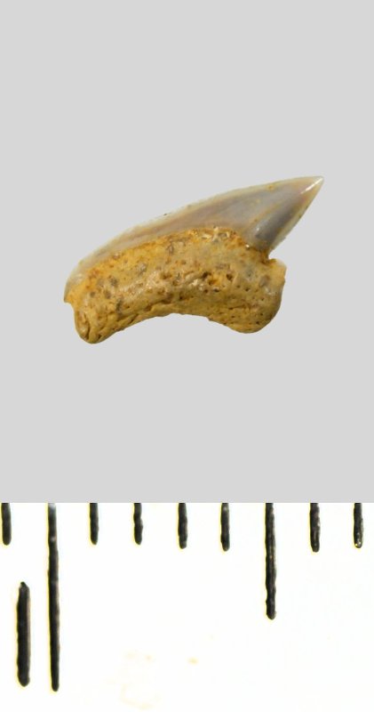 Зуб. Акула. Palaeoanacorax obliquus (Reuss, 1845). Классификация: Хордовые Chordata, Позвоночные Vertebrata, Хрящевые рыбы Chondrichthyes, Пластиножаберные Elasmobranchii, Акулы Selachii, Ламнообразные Lamniformes, Anacoracidae