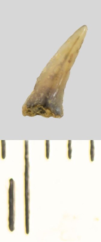 Зуб (фрагмент). Акула. Eostriatolamia subulata (Agassiz, 1843). Классификация: Хордовые Chordata, Позвоночные Vertebrata, Хрящевые рыбы Chondrichthyes, Пластиножаберные Elasmobranchii, Акулы Selachii, Ламнообразные Lamniformes, Песчаные акулы Odontaspididae