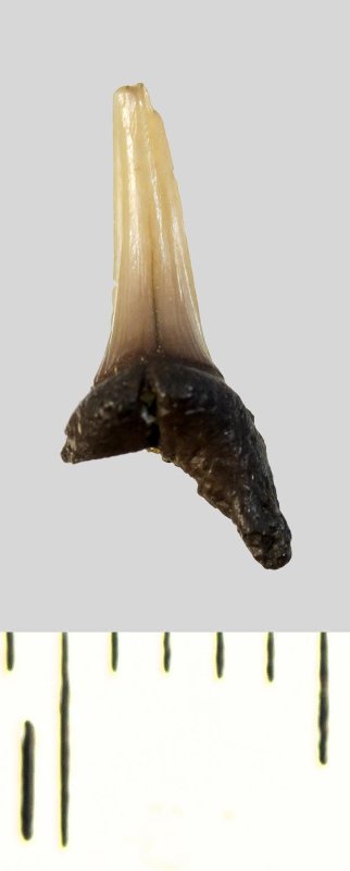 Зуб. Акула. Eostriatolamia subulata (Agassiz, 1843). Классификация: Хордовые Chordata, Позвоночные Vertebrata, Хрящевые рыбы Chondrichthyes, Пластиножаберные Elasmobranchii, Акулы Selachii, Ламнообразные Lamniformes, Песчаные акулы Odontaspididae