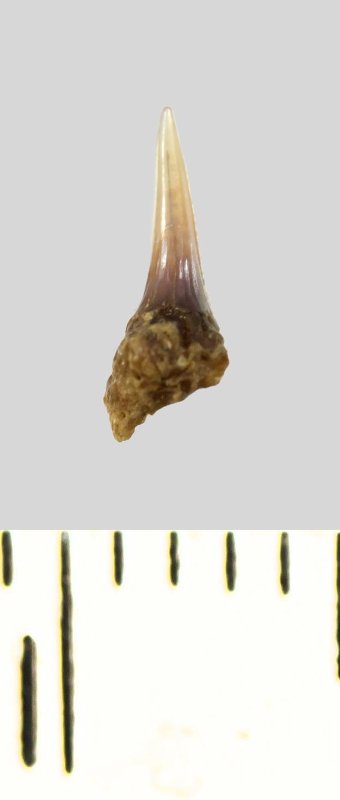 Зуб. Акула. Eostriatolamia subulata (Agassiz, 1843). Классификация: Хордовые Chordata, Позвоночные Vertebrata, Хрящевые рыбы Chondrichthyes, Пластиножаберные Elasmobranchii, Акулы Selachii, Ламнообразные Lamniformes, Песчаные акулы Odontaspididae