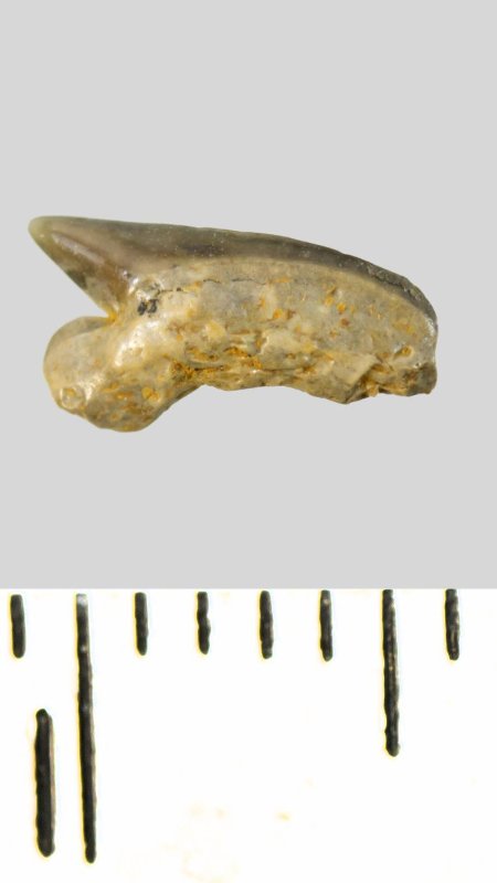Зуб. Акула. Palaeoanacorax volgensis Glueckman, 1971. Классификация: Хордовые Chordata, Позвоночные Vertebrata, Хрящевые рыбы Chondrichthyes, Пластиножаберные Elasmobranchii, Акулы Selachii, Ламнообразные Lamniformes, Anacoracidae