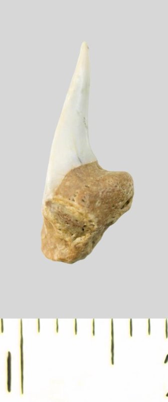 Зуб. Акула. Protolamna cf. sokolovi Capetta, 1980. Классификация: Хордовые Chordata, Позвоночные Vertebrata, Хрящевые рыбы Chondrichthyes, Пластиножаберные Elasmobranchii, Акулы Selachii, Ламнообразные Lamniformes, Pseudoscapanorhynchidae