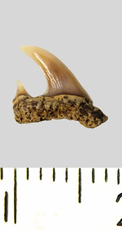 Зуб. Акула. Eostriatolamia subulata (Agassiz, 1843). Классификация: Хордовые Chordata, Позвоночные Vertebrata, Хрящевые рыбы Chondrichthyes, Пластиножаберные Elasmobranchii, Акулы Selachii, Ламнообразные Lamniformes, Песчаные акулы Odontaspididae