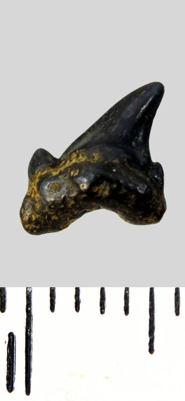 Зуб. Акула. Archaeolamna cf. kopingensis (Davis, 1890). Классификация: Хордовые Chordata, Позвоночные Vertebrata, Хрящевые рыбы Chondrichthyes, Пластиножаберные Elasmobranchii, Акулы Selachii, Ламнообразные Lamniformes