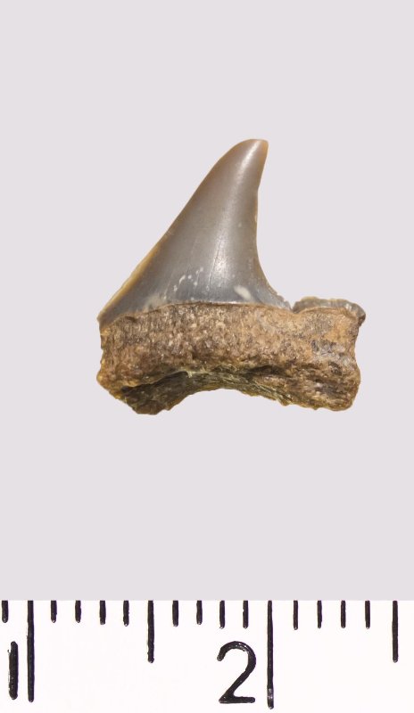 Зуб. Акула. Lamniformes gen. et sp. indet. Классификация: Хордовые Chordata, Позвоночные Vertebrata, Хрящевые рыбы Chondrichthyes, Пластиножаберные Elasmobranchii
