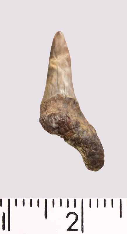 Зуб. Акула. Rhaphiodus sp. Классификация: Хордовые Chordata, Позвоночные Vertebrata, Хрящевые рыбы Chondrichthyes, Пластиножаберные Elasmobranchii
