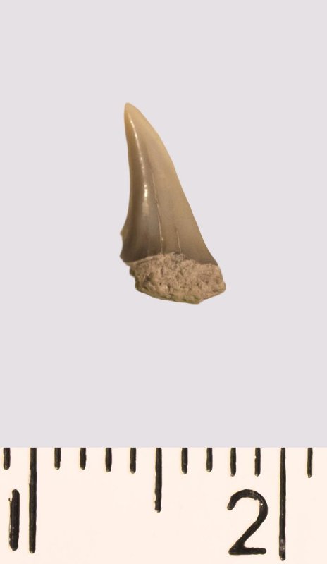 Зуб (фрагмент). Акула. Odontaspis venusta (Leriche, 1929). Классификация: Хордовые Chordata, Позвоночные Vertebrata, Хрящевые рыбы Chondrichthyes, Пластиножаберные Elasmobranchii