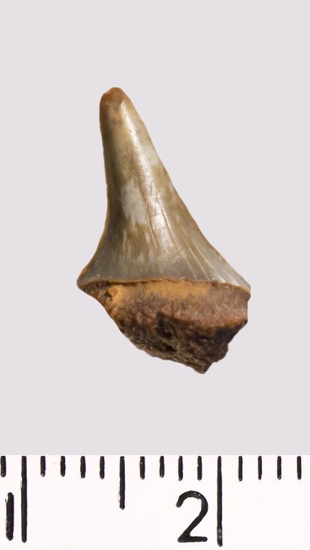 Зуб (фрагмент). Акула. Cretodus sp. Классификация: Хордовые Chordata, Позвоночные Vertebrata, Хрящевые рыбы Chondrichthyes, Пластиножаберные Elasmobranchii