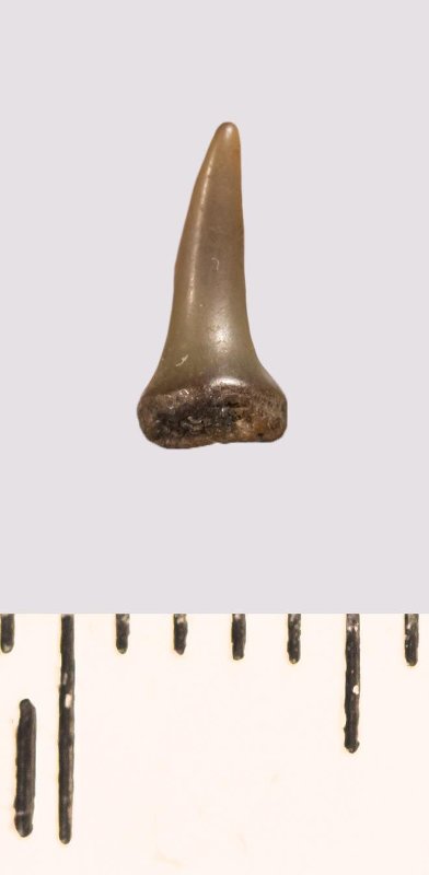 Зуб (фрагмент). Акула. Eostriatolamia sp. Классификация: Хордовые Chordata, Позвоночные Vertebrata, Хрящевые рыбы Chondrichthyes, Пластиножаберные Elasmobranchii
