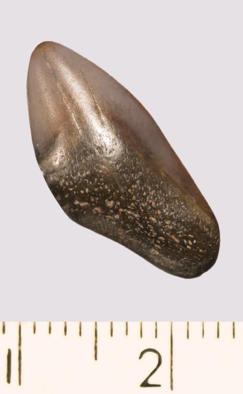 Зуб (фрагмент). Акула. Anacorax santonicus Glueckman et Zelezko,1980. Классификация: Хордовые Chordata, Позвоночные Vertebrata, Хрящевые рыбы Chondrichthyes, Пластиножаберные Elasmobranchii