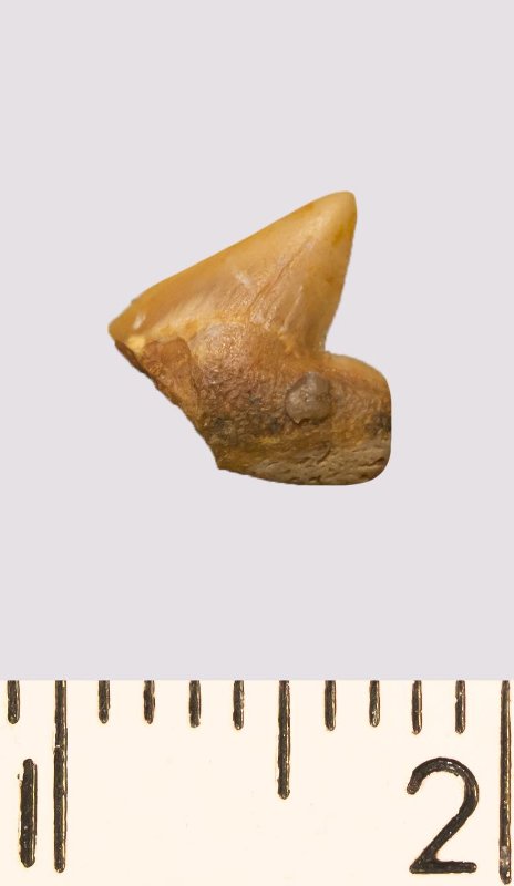 Зуб. Акула. Palaecorax falcatus (Agassiz, 1843). Классификация: Хордовые Chordata, Позвоночные Vertebrata, Хрящевые рыбы Chondrichthyes, Пластиножаберные Elasmobranchii