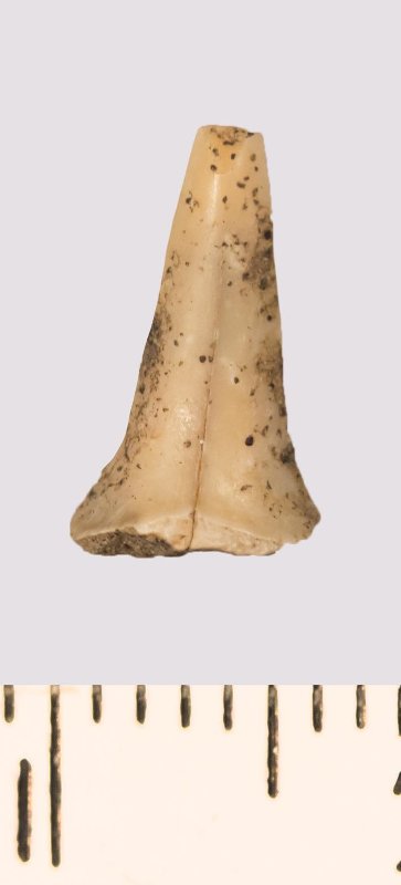 Зуб (фрагмент). Акула. Odontaspis venusta (Leriche, 1929). Классификация: Хордовые Chordata, Позвоночные Vertebrata, Хрящевые рыбы Chondrichthyes, Пластиножаберные Elasmobranchii