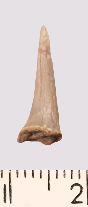 Зуб (фрагмент). Акула. Rhaphiodus sp. Классификация: Хордовые Chordata, Позвоночные Vertebrata, Хрящевые рыбы Chondrichthyes, Пластиножаберные Elasmobranchii