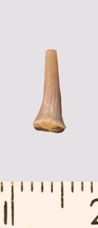 Зуб (фрагмент). Акула. Scapanorhynchus rhaphiodon Agassiz, 1843. Классификация: Хордовые Chordata, Позвоночные Vertebrata, Хрящевые рыбы Chondrichthyes, Пластиножаберные Elasmobranchii