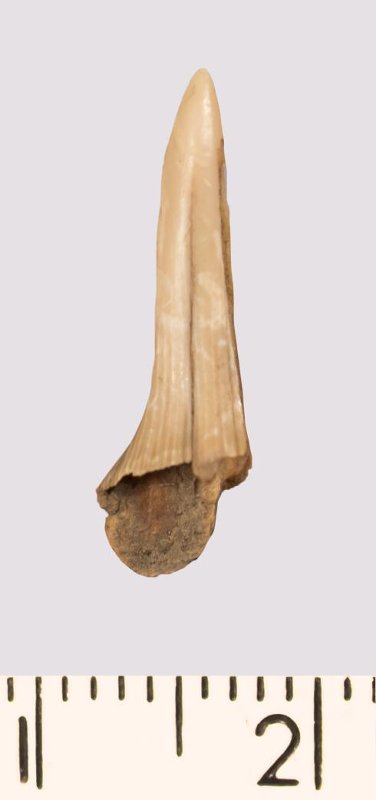 Зуб (фрагмент). Акула. Scapanorhynchus sp. Классификация: Хордовые Chordata, Позвоночные Vertebrata, Хрящевые рыбы Chondrichthyes, Пластиножаберные Elasmobranchii