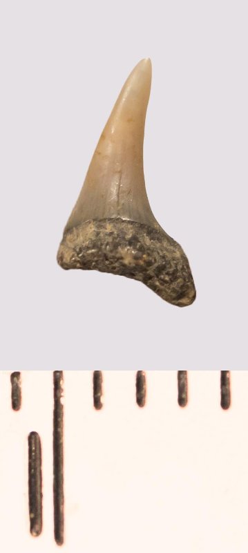Зуб. Акула. Odontaspis venusta (Leriche, 1929). Классификация: Хордовые Chordata, Позвоночные Vertebrata, Хрящевые рыбы Chondrichthyes, Пластиножаберные Elasmobranchii